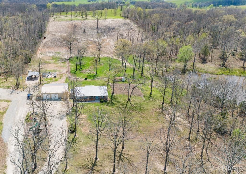 Escape to the perfect blend of comfort, functionality, and wide-open space with this 3 bedroom, 2 bathroom home on nearly 10 acres in Salem! Designed with a desirable split floor plan, this home features a spacious great room with cathedral ceilings, creating an open and inviting atmosphere. The kitchen is a standout with custom oak cabinetry, a center island, and stainless steel appliances-perfect for both everyday living and entertaining. The primary suite offers a relaxing retreat with a walk-in closet, double vanity, jetted tub, and separate shower. Accessibility is thoughtfully considered with 36 interior doorways. Additional features include an electric heat pump with supplemental gas wall unit and central air for year-round comfort. Built to last, this slab home boasts 2x6 exterior walls, durable metal siding and roof, and quality Pella windows. Outside, you'll find a detached 2-car garage/shop with concrete floors and electric, plus a finished man cave complete with a mini split system. A lean-to adds extra covered space, along with a 20x24 concrete carport and an additional 24x20 concrete pad. The land is equally impressive, offering approximately 8 acres of open pasture with perimeter fencing (steel corners and 5-strand barbed wire), plus a ~2 acre m/l established food plot featuring wheat, clover, turnips, and cow peas-ideal for hunting or livestock. Enjoy evenings around the firepit, and take advantage of the playground set for outdoor fun. Property includes a lagoon, shared well, and shared driveway. If you've been searching for a versatile property with room to roam, this one checks all the boxes! What are you waiting for? Schedule your private tour today!